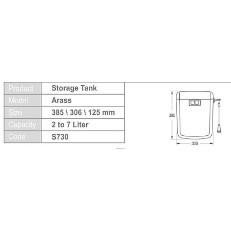 فلاش تانک ایمن آب مدل ارس، کششی-فشاری که در این قسمت به معرفی آن میپردازیم، مجهز به فلوتر (شناور) دیافراگمی بوده و بیصداست. این دستگاه قابلیت تنظیم میزان خروج آب را دارد تا در مصرف آب صرفهجویی شود. همچنین این فلاش تانک دارای لوله و اتصالاتی با طراحی جدید است که در مدت زمان 5 دقیقه، به آسانی نصب میشود. فلاش تانک ارس دارای سه حالت تخلیه به صورت کششی و شاسی با کارکرد دو زمانه است. بدنه این فلاش تانک از ABS-POM ساخته شده است. وجود نشان استاندارد ایران، گویای کیفیت مطلوب این فلاش تانک است. ظرفیت مخزن این فلاش تانک 2 تا 7 لیتر است. ایت فلاش تانک دارای طراحی زیبا و شیک، دارای پمپی با امکان تنظیم میزان خروج آب، دارای لوله و اتصالات با طرح جدید و امکان نصب در کمتر از 5 دقیقه می باشد.